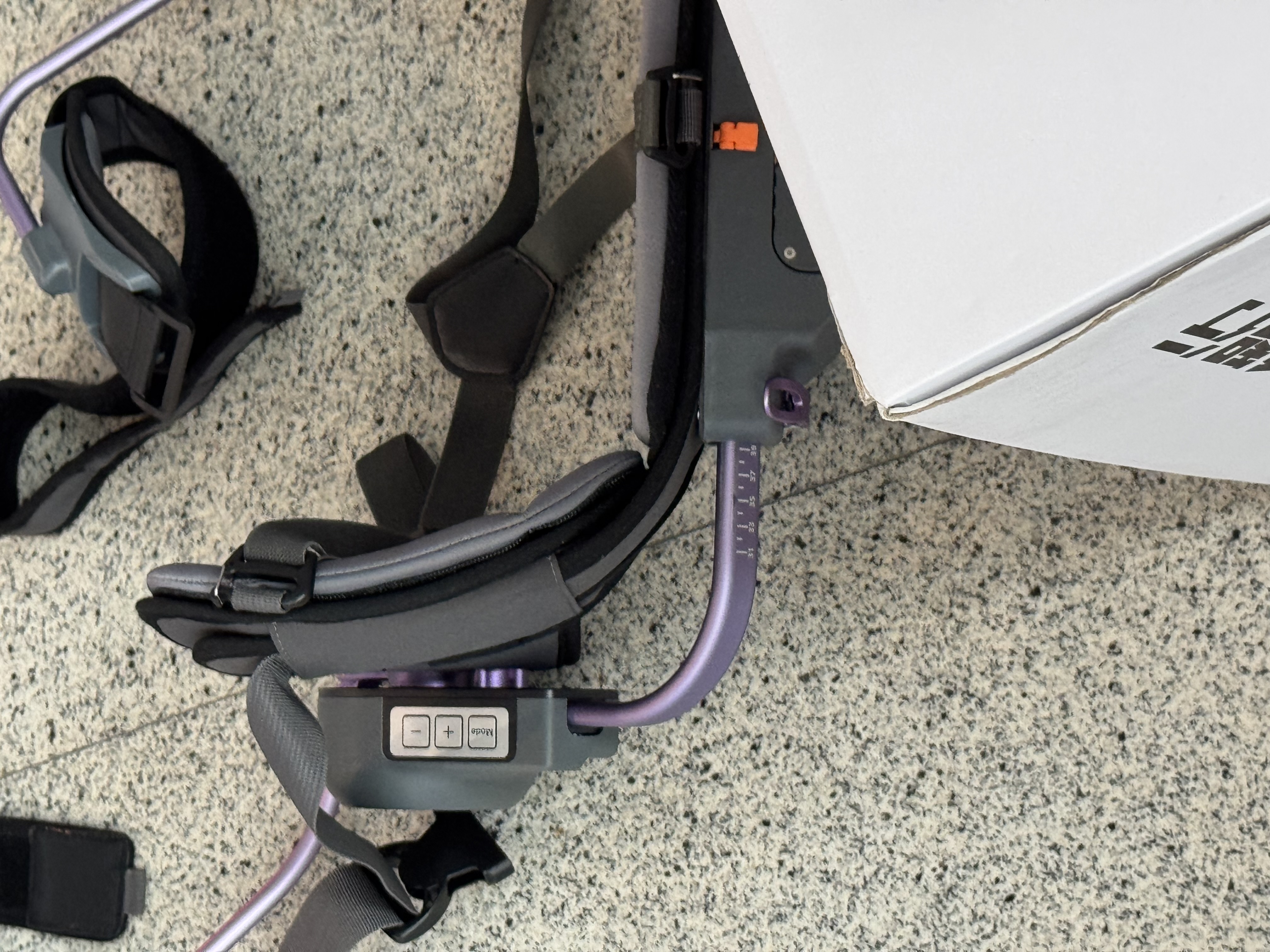어깨와 허리, 다리에 장치를 고정하고 전원을 켜면 로봇 다리가 작동합니다. 자동으로 움직이는 것은 아니고, 제 움직임에 따라 로봇 다리가 무릎을 더 쉽게 들어올리도록 보조해 주는 원리였습니다. 처음 착용하고 걸으니 누가 무릎을 확 끌어올리는 느낌이라 어색했습니다.